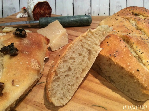 Focaccia genovesa con aceitunas y tomates