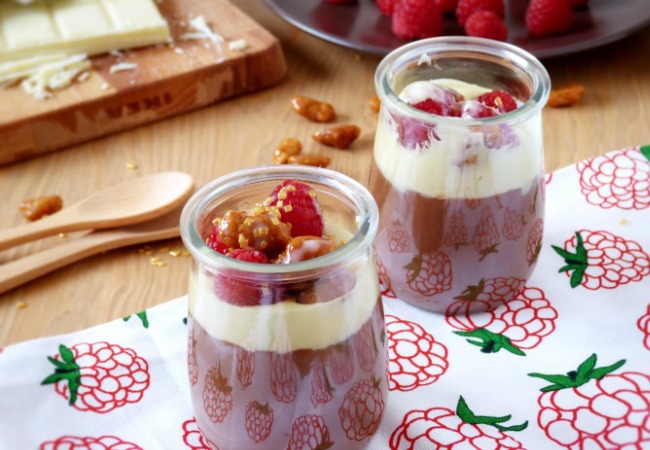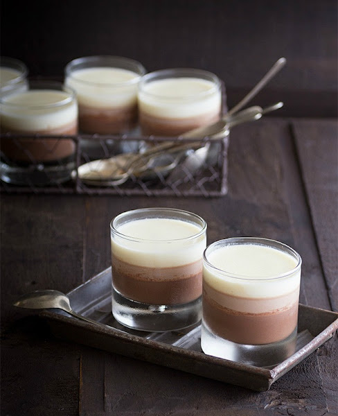 Es un postre perfecto por su textura ligera y suave. Se elabora con tres tipos de chocolate; negro, con leche y blanco y se le agrega gelatina para conseguir esa textura menos densa y presentarlo en copas o vasos. La receta completa la puedes ver en Directo al Paladar