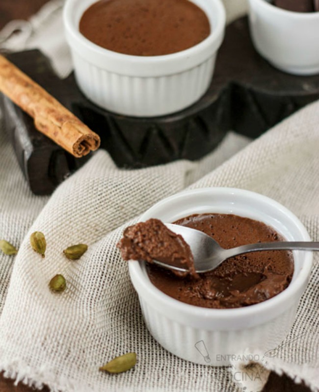 nos propone unos vasitos de chocolate con leche especial de almendra, añadiendo como toque final especias, una combinación de sabores exóticos como canela, cardamomo y pimienta de Jamaica......¿Atrevido verdad?