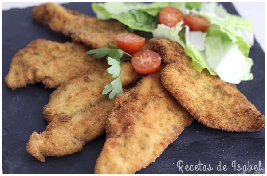 Filetes de pollo empanados, marinadas en una sencilla mezcla de ingredientes que les da un sabor espectacular.