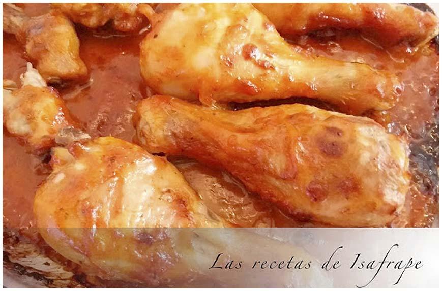 Para terminar tenemos este rico pollo con salsa barbacoa. Desde hacía algún tiempo me venía rondando esta idea por la cabeza, hasta que hoy, por fin, la he puesto en práctica, y el resultado ha gustado muchísimo a todos.