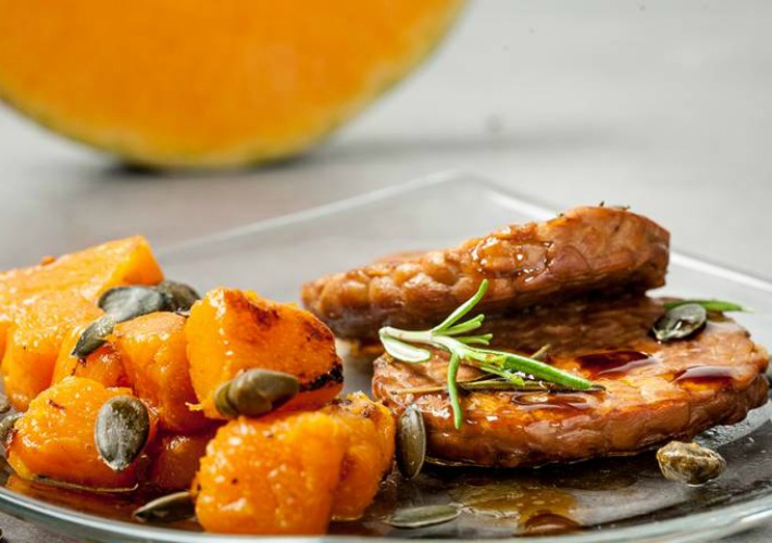 La calabaza da mucho juego en la cocina y también la puedes utilizar como acompañante de tus platos. Por ejemplo cortada en dados acompañando a un tempeh marinado con especies. No te pierdas la receta de Gallina blanca