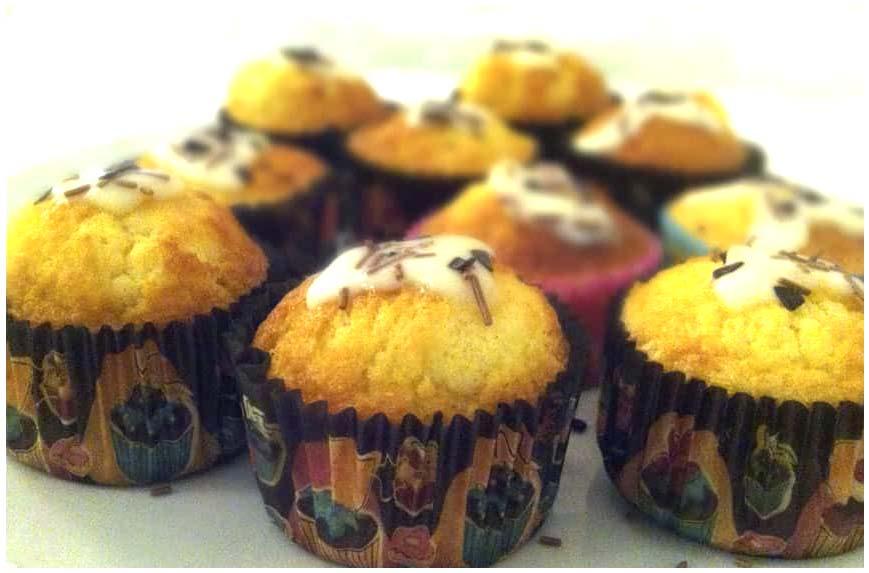 Magdalenas rellenas de crema inglesa con chocolate blanco