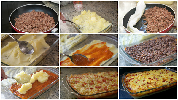 Anna, nos ofrece un plato contundente para alimentar bien a toda la familia. Para hacer su receta es necesario: patatas, carne mixta picada, tomate, tacos de jamón serrano y cebolla entre los ingredientes principales. Se cuecen las patatas, hacemos con ellas un puré. Sofreímos la cerne con la cebolla, en una fuente de horno extendemos una capa de puré de patatas, sobre ella extendemos el tomate y el sofrito de cebolla y carne. Cubrimos con el pu´re de patatas y los tacos de jamón esparcidos por encima. Para ver la receta completa y el resto de los ingredientes: (Aquí)