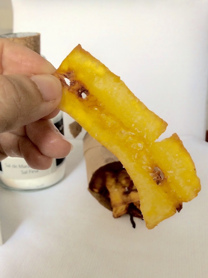 Clau, nos ofrece unos ricos bocados muy aromáticos, hecho con pasta brick, queso mozzarella, espinacas y albahaca. Cortamos las laminas y las rellenamos, formamos unos rollos y los cocinamos en una sartén a fuego bajo. Para ver todos los detalles: (Aquí)Chips de plátano