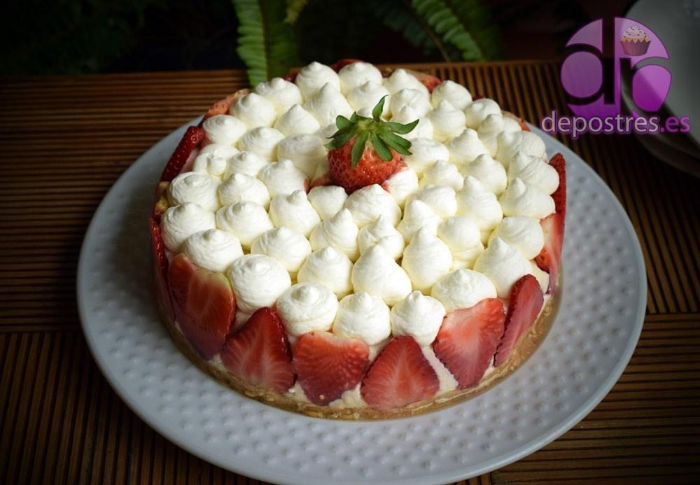 5) Tarta de Chocolate Blanco y Fresas sin Horno
