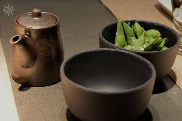 Nada mas sentarnos, nos vinieron a atender, ofreciéndonos un aperitivo que a mí me apasiona: Edamame Yakiniku (habas de soja salteadas con yakiniku). Una manera diferente e interesante de empezar nuestra comida.