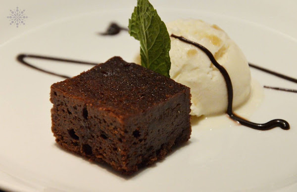 El postre, un Brownie de chocolate templado con helado de jengibre.