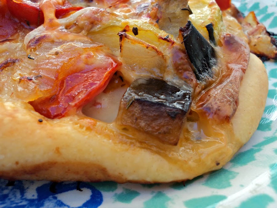 Esta receta está ya a medio camino entre la pizza y las cocas. Es una deliciosa pizza de verduras del blog Olor a Hierbabuena, que os sacará de dudas si todavía pensáis que las hortalizas son aburridas.
