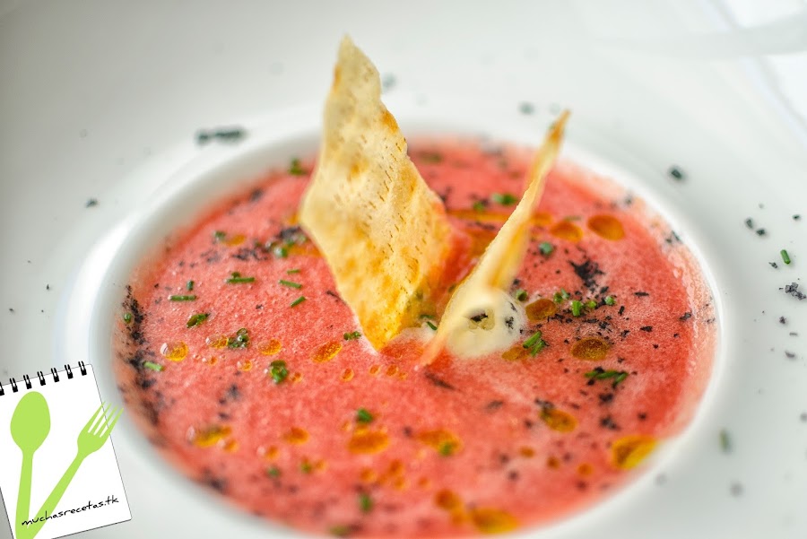 Y para la estación del año en la que estamos y el calor que hace, no podían faltar los siguientes platos. El primero "Gazpacho de sandía con helado de queso manchego", muy fresco, el queso le daba un sabor muy curioso y agradable. El segundo, un "Salmorejo cordobés", acompañado de jamón, ¡¡delicioso!!.