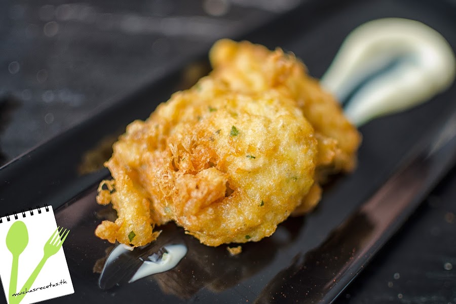 Es turno de la "Selección de fritura", compuesto por "Croqueta de cocido, acompañada con un ali oli de morcilla", textura semilíquida por dentro y crujiente por fuera, como debe de ser una buena croqueta, y después "Buñuelos de bacalao con mayonesa de cítricos", muy bien elaborados.