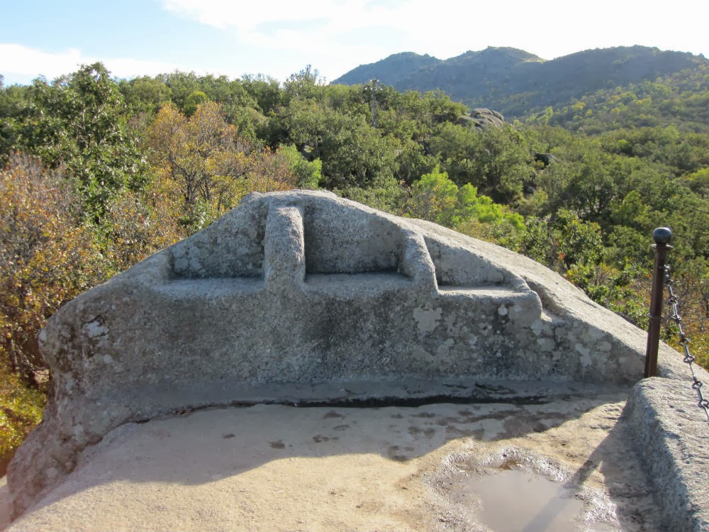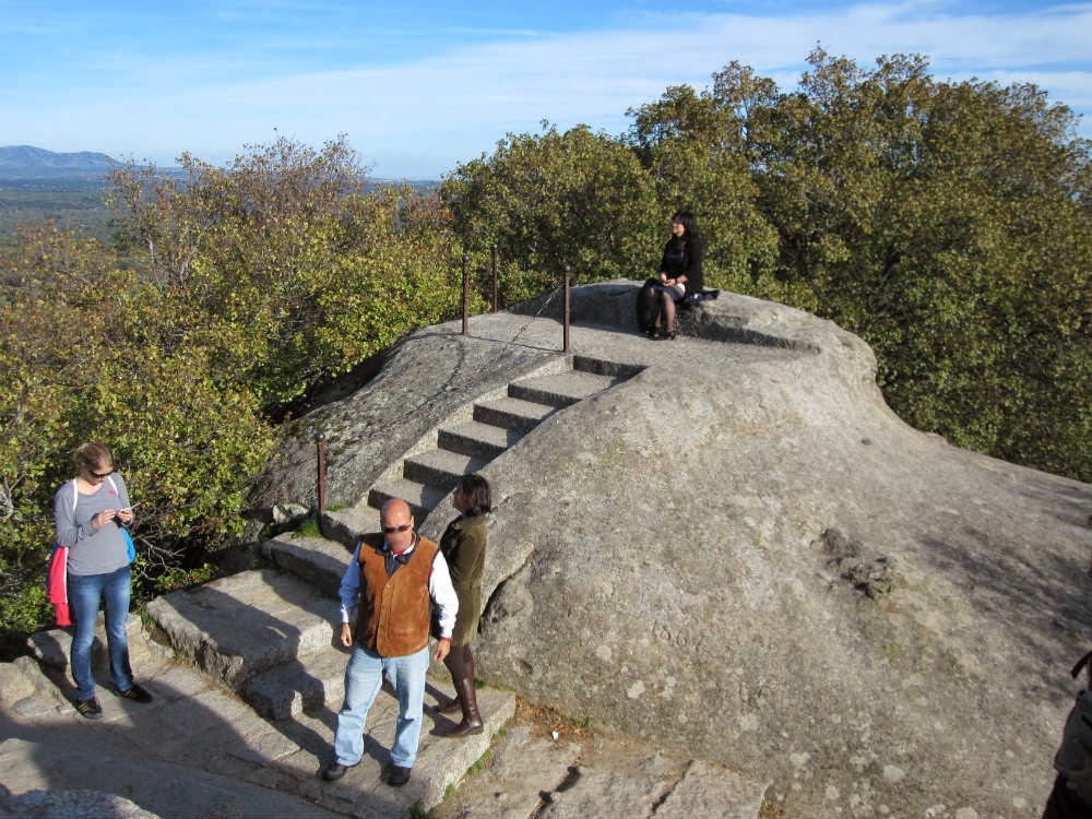 Dicen que posiblemente el Rey Felipe II nunca estuvo allí, que de haber buscando un "mirador" para seguir la obra del Monasterio, nunca habría sido ese enclave.. Se decantan más por la otra version, la que más me gusta: que realmente fue un altar pre-cristiano, de origen Vetón (un pueblo de cultura celta) desde donde veneraban a sus Dioses.