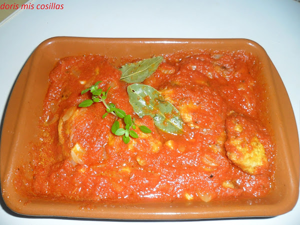 Ponemos las tajadas fritas sobre una fuente y agregamos el tomate frito.