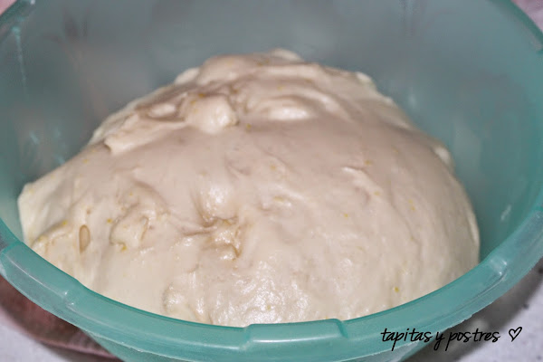 Dejamos reposar la masa en un bol con film transparente hasta que doble su volumen.