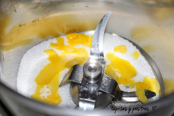 Poner el azúcar con la piel de limón en el vaso, pulverizar 20 seg. a velocidad 5-10