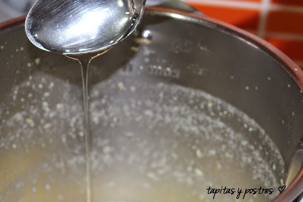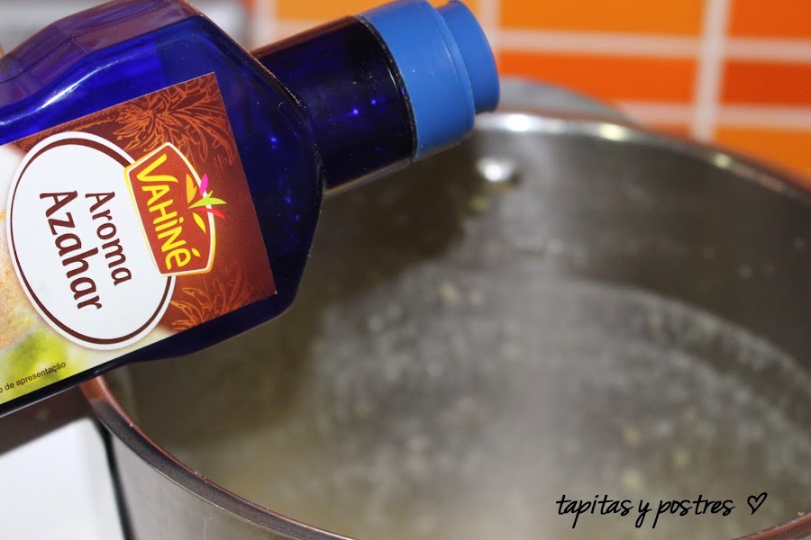 Añadir ahora el agua de azahar y el azúcar invertido (si no tenéis podéis poner miel)