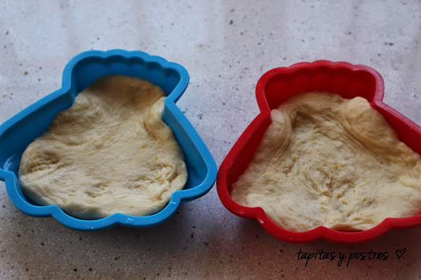 Con la otra mitad, hacemos porciones pequeñas y las ponemos sobre los moldes de silicona o simplemente damos forma de bola aplastada.