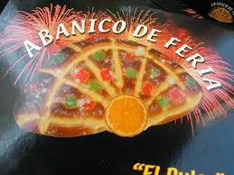 Este es un dulce típico de la feria de Málaga. Desde hace pocos años, llegando la feria, las pastelerías se llenan de abanicos dulces, con una especie de masa de roscón, crema y frutas confitadas.