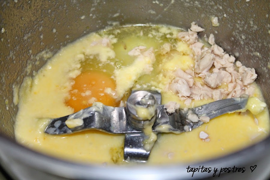 Ahora añadimos el huevo y la levadura desmenuzada.