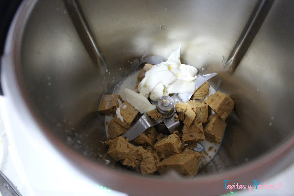 en el vaso de la thermomix con la nata (crema de leche) y programamos 3 minutos a 70º y velocidad 3.