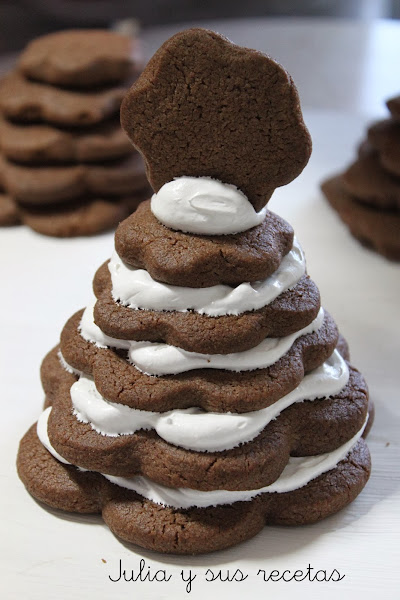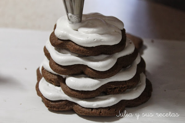 Luego la siguiente galleta en tamaño la ponemos encima del merengue, la siguiente galleta,mas merengue...