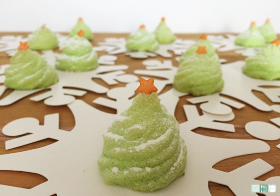 Esta es para esas largas sobremesas que no paras de picar; La receta es la misma que tenéis en este enlace, solo que para los merenguitos diadblo llevan una pizca de jengibre y estos arbolitos no tienen que tener ese puntito de alegria, tienen que ser dulces, coronado con una estrella de azúcar.