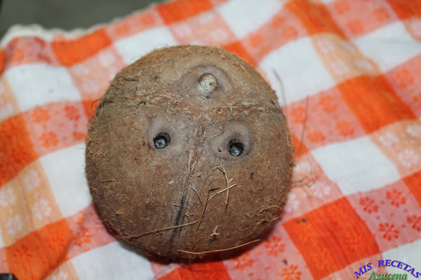 Lo primero que haremos será sacarle el agua al coco, para poder hacerlo cogeremos el destornillador y el martillo y perforaremos dos de los tres ojos que tiene el coco.