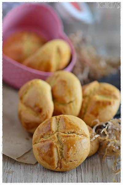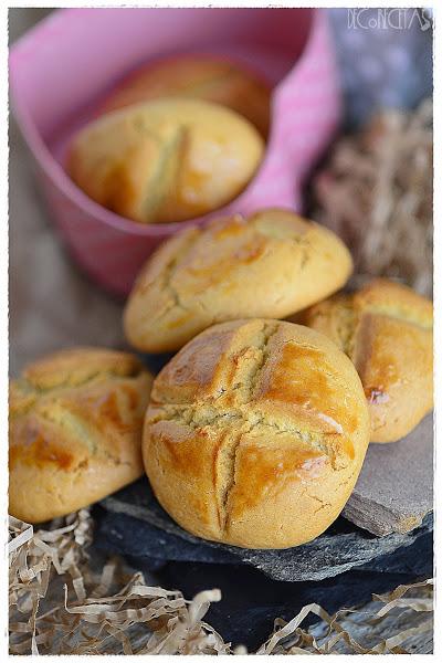 Yo metí todos los ingredientes a la vez en la thermomix, y amasé a velocidad espiga, añadiendo más harina si la masa no está lo suficientemente manejable. La consistencia tiene que no quedar muy dura, pero despegarse de las manos. Metemos en la nevera al menos media hora antes de hacer las bolitas de unos 30-40gr cada una, hacerles una cruz con el cuchillo y pintar con huevo batido. Depositar en la bandeja del horno separadas unas de otras porque se agrandan un poco,y hornear a 180º por 20-30 minutos
