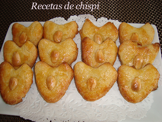 Estirar con rodillo y con un cortapastas cortar, poner en la bandeja de horno y colocar una almendra encima y luego pintar con huevo batido las pastas, si se quieren hacer bolas, coger masa y hacer bolitas del tamaño de una nuez, colocar en la bandeja y hacer un corte en cruz y pintar con huevo.