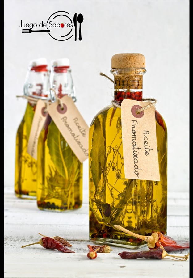 Pues bien, a partir de un buen aceite de oliva extra virgen hemos elaborado esta receta que, propiamente, no es un plato pero que puede ayudar a mejorar una pizza, un pescado, una ensalada o un plato de pasta. Sólo hay que añadir unas guindillas, tomillo, romero o laurel y esperar un par de semanas.