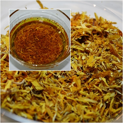Flores de caléndula, (gracias a Antonia por tu regalito de flores de caléndula y tus instrucciones) las podemos encontrar en una herboristeria.