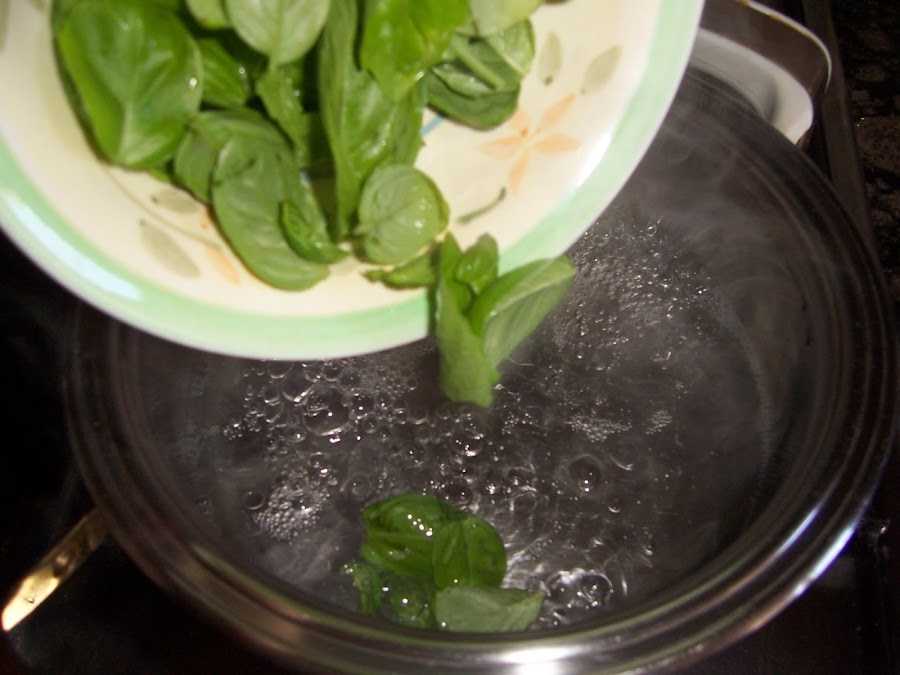 Pero si queremos un aceite con mucho color y sabor, sobre todo si es de hierbas aromáticas, una buena manera es Escaldar o blanquear las hierbas, ésto es pasarlas por agua hirviendo unos 10 segundo y rápidamente sumergirlas en agua helada para detener la cocción.