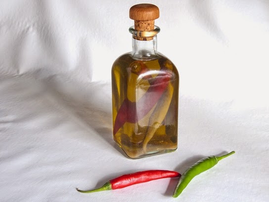 En una botella ponemos los chiles bien lavados y secos, rellenamos con el aceite y dejamos reposar tres o cuatro semanas. Recuerde que cuanto más tiempo permanezca, más picante resultará. Filtramos y ya tenemos un aliño ideal para platos de pasta, pizzas o ensaladas.