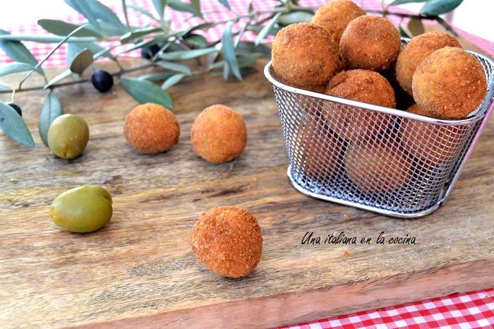 Olive allascolana o aceitunas fritas rellenas