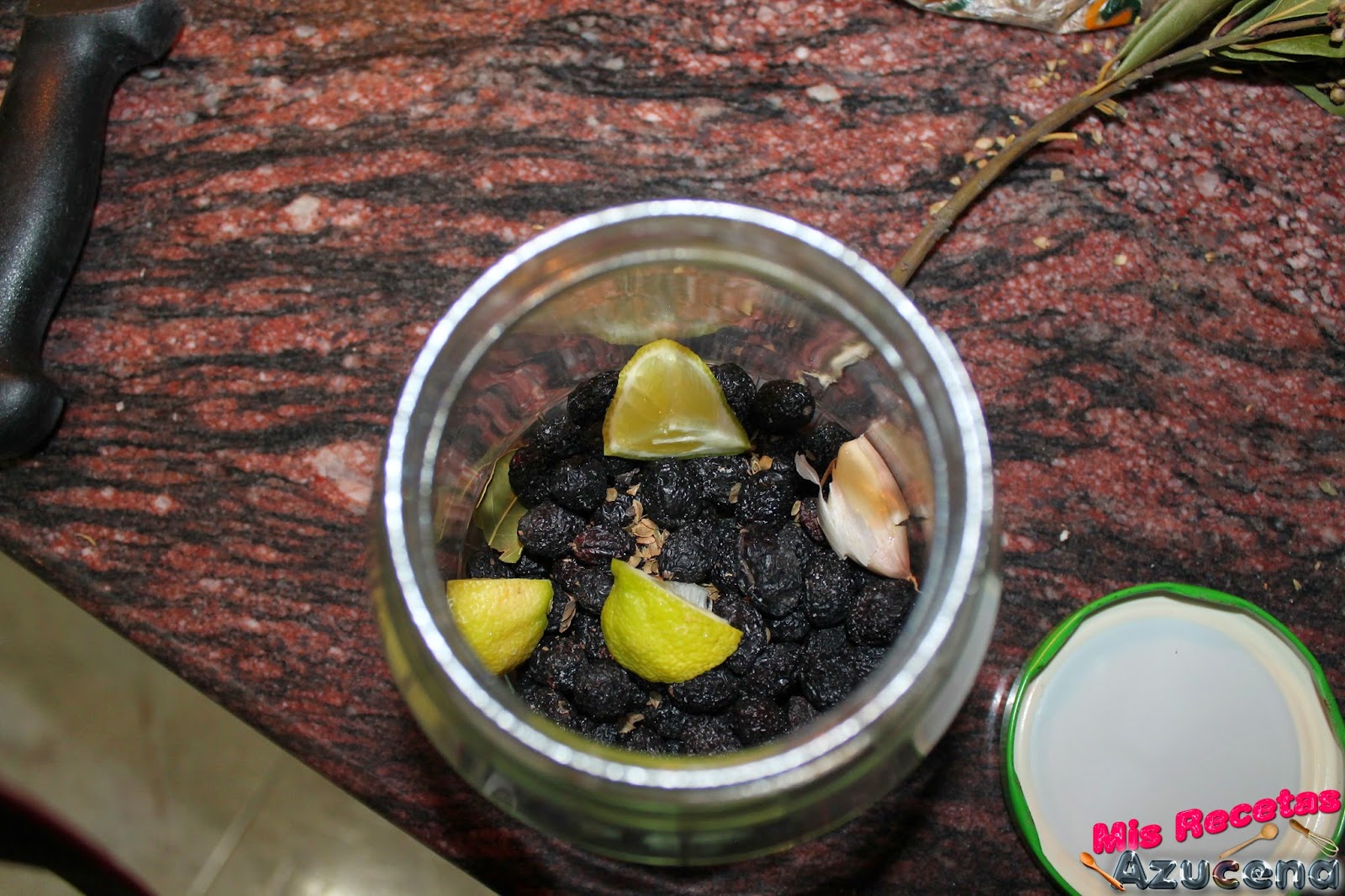 Ya tenemos las aceitunas aliñadas ahora falta que cada dos días más o menos removamos el bote sin abrirlo, si observamos que la aceituna salen por encima del líquido le añadiremos un poco más de agua.