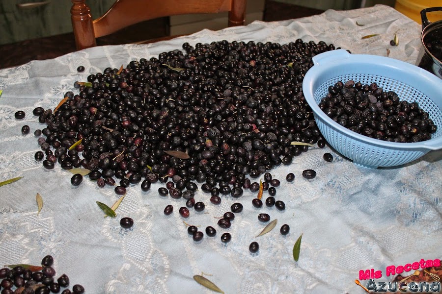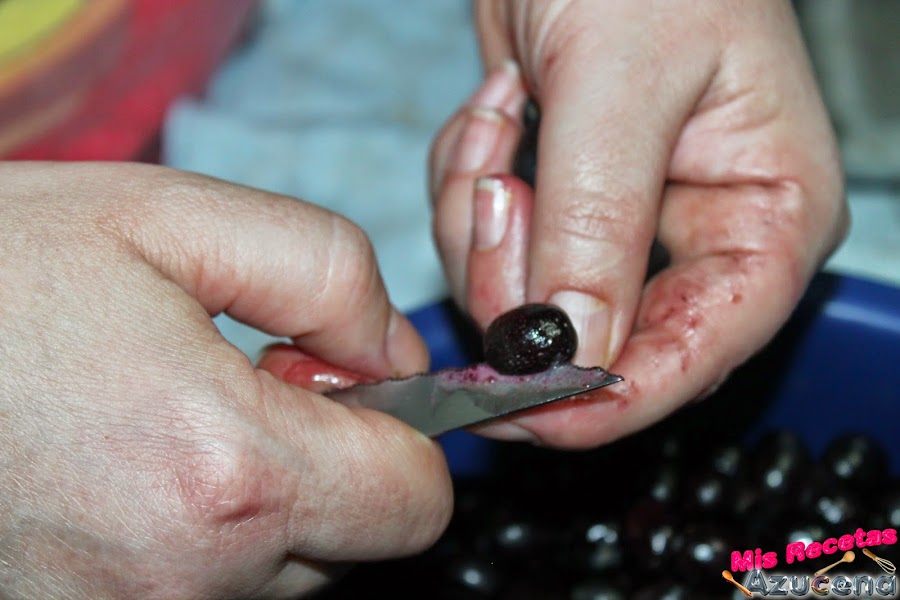 Para esta receta necesitaremos que las aceitunas estén bien maduras, las lavaremos y con ayuda de un cuchillo le haremos un corte a lo largo a cada una, yo no tengo máquina para hacer los cortes, toca hacerlo a mano.