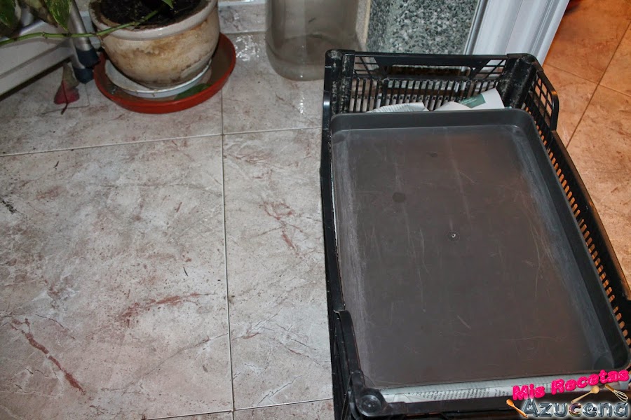 Ahora pondremos la caja en un sitio que le dé el aire y le pondremos peso encima para estrujar las aceitunas.