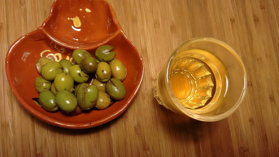 -Ajo. 3 ajos machacados. (1 por kg de aceitunas)