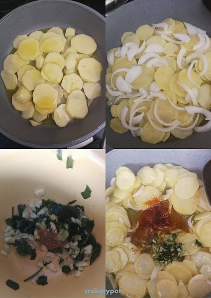 INGREDIENTES: 500 gr de acelgas, 3 patatas, 1 cebolla fresca, 2 ajos, perejil, 1 cucharadita de pimentón, una puntita de comino, sal , aceite de oliva AOVE.. (beicon o taquitos de jamón, opcional)