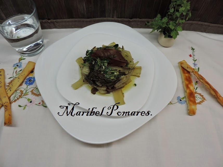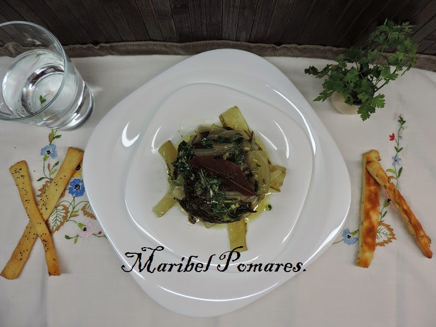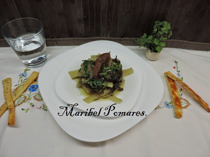 Le echamos la picada por encima y le ponemos para decorar el laurel de cocerlas encima.