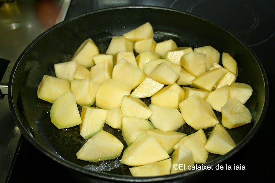 En una sartén con aceite de oliva caliente, ponemos a freir las patatas