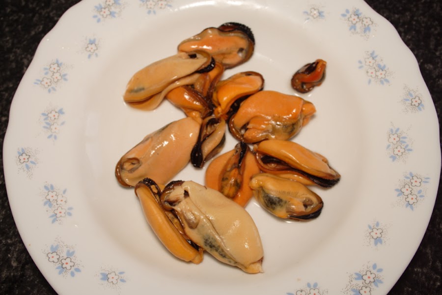 Una vez abiertos, les quitamos las valvas y reservamos. Colamos también el líquido de cocerlos y reservamos.