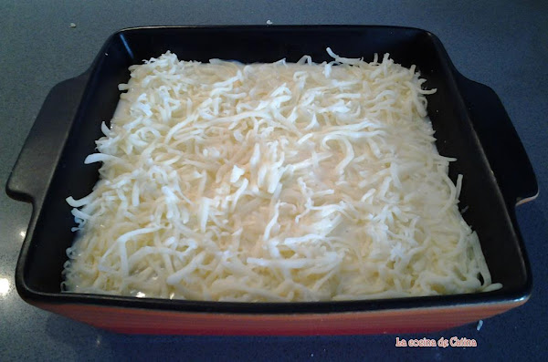 Colocarlas en una fuente apta para horno, cubrirlas con la salsa y con el queso rallado.