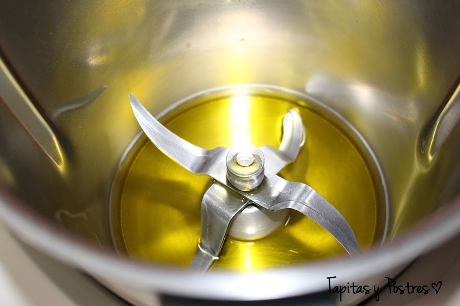 Ponemos el aceite a calentar 3 minutos, varoma y velocidad 1.
