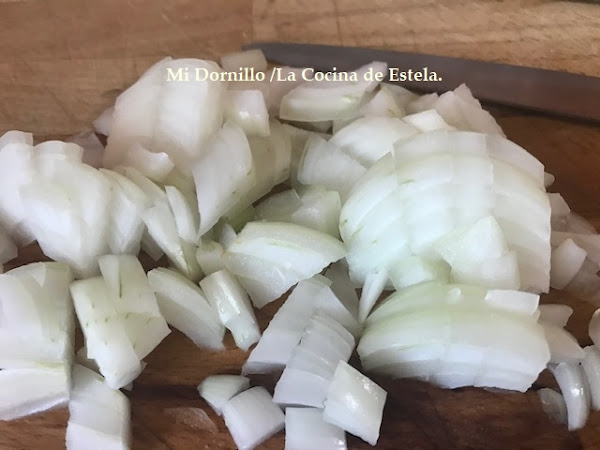 En una cazuela u olla ponemos un buen chorrito de aceite de Oliva virgen; ponemos la cebolla y pochamos.