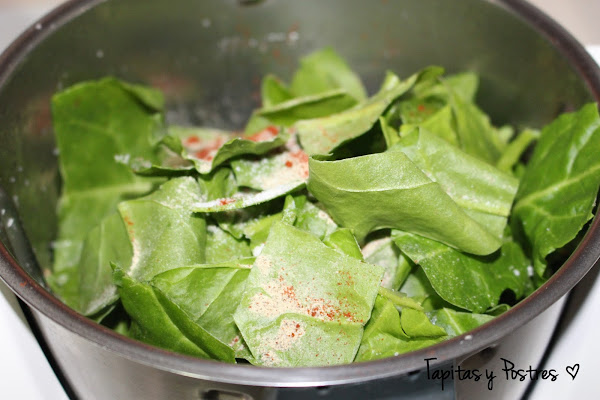 Añadimos las acelgas y las especias y cocinamos hasta que se hagan bien.