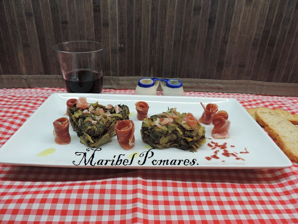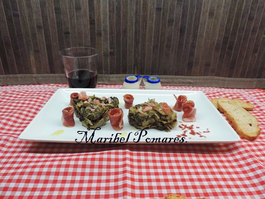 Cortamos el jamón serrano en trozos y lo echamos por encima.