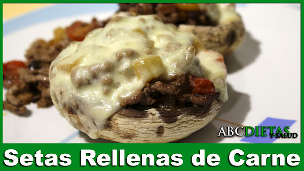 * Pon el aceite restante en una fuete que puedas llevar al horno, coloca las setas y rellénalas con la carne y las verduras. Coloca encima una rodaja de mozzarella.
