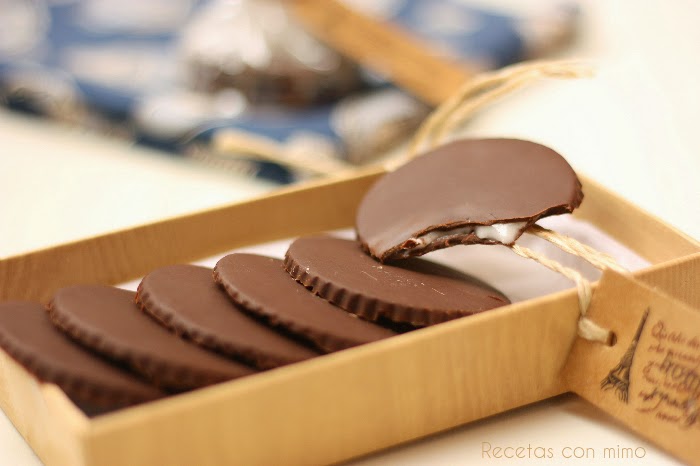 A mi chico no hay nada que le guste más que la combinación de la menta con el chocolate. Así que tenía ganas de hacerle los famosos chocolates rellenos de menta After eight... o intentarlo al menos. Y la verdad que lo he conseguido. Están riquísimos y a él le han encantado.
