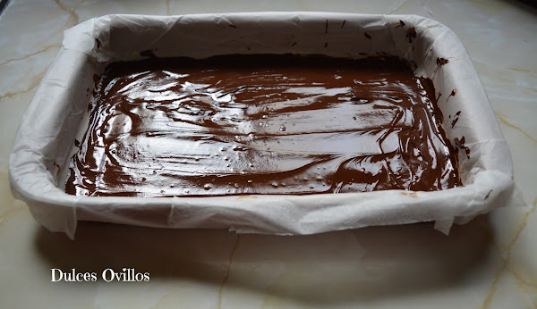 Extender la pasta obtenida sobre el chocolate que ya estará firme.